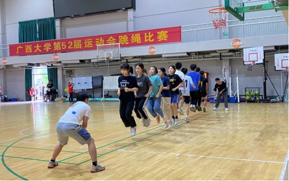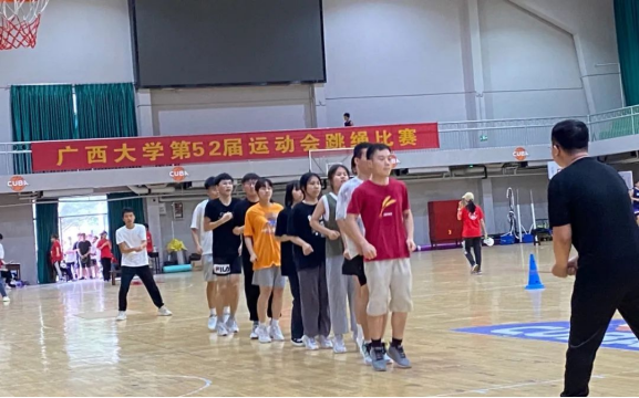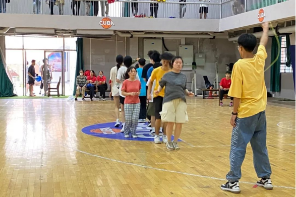 “哒哒哒...”的声音贯穿篮球馆,运动员和裁判员迅速进入状态,紧握绳子,手腕快速转动,时间在裁判员一声声数字中流逝。在这短暂的时间里,大家为同一个目标努力,并肩作战,尽情享受运动带来的快乐。