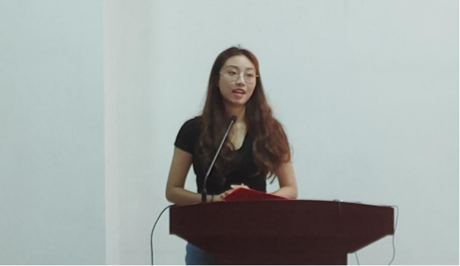 吴敏桦同学以《担时代重任,走光明征程》为题,谈到事物的发展是前进的,是曲折的。新时代的中国青年,生逢其时,重任在肩,施展才干的舞台无比广阔,实现梦想的前景无比光明。所以,不要妄自菲薄,请充满信心,保持热爱,不忘初心,砥砺前行,你所走的每一步,都会在未来为你绽放光芒。