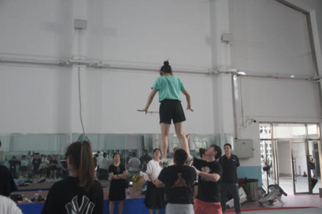 尖子们空中好似一只丛中的蝴蝶,在空中舞动着,伴随着各种高难度的动作,翩若惊鸿,宛若游龙。领导们不禁为尖子们惊叹,也为底座们对尖子们的保护点赞。预祝他们也能够在接下来的一系列的比赛中取得好的成绩。