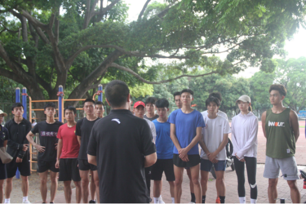 首先视察检查的是田径队的训练情况。在烈日炎炎的下午,田径队的队员们顶着烈阳在跑道上驰骋奔跑,黄小波经理表示田径运动员们在烈日中不怕苦不怕晒的精神值得赞扬,对于训练所需的物资公司也会尽可能提供。