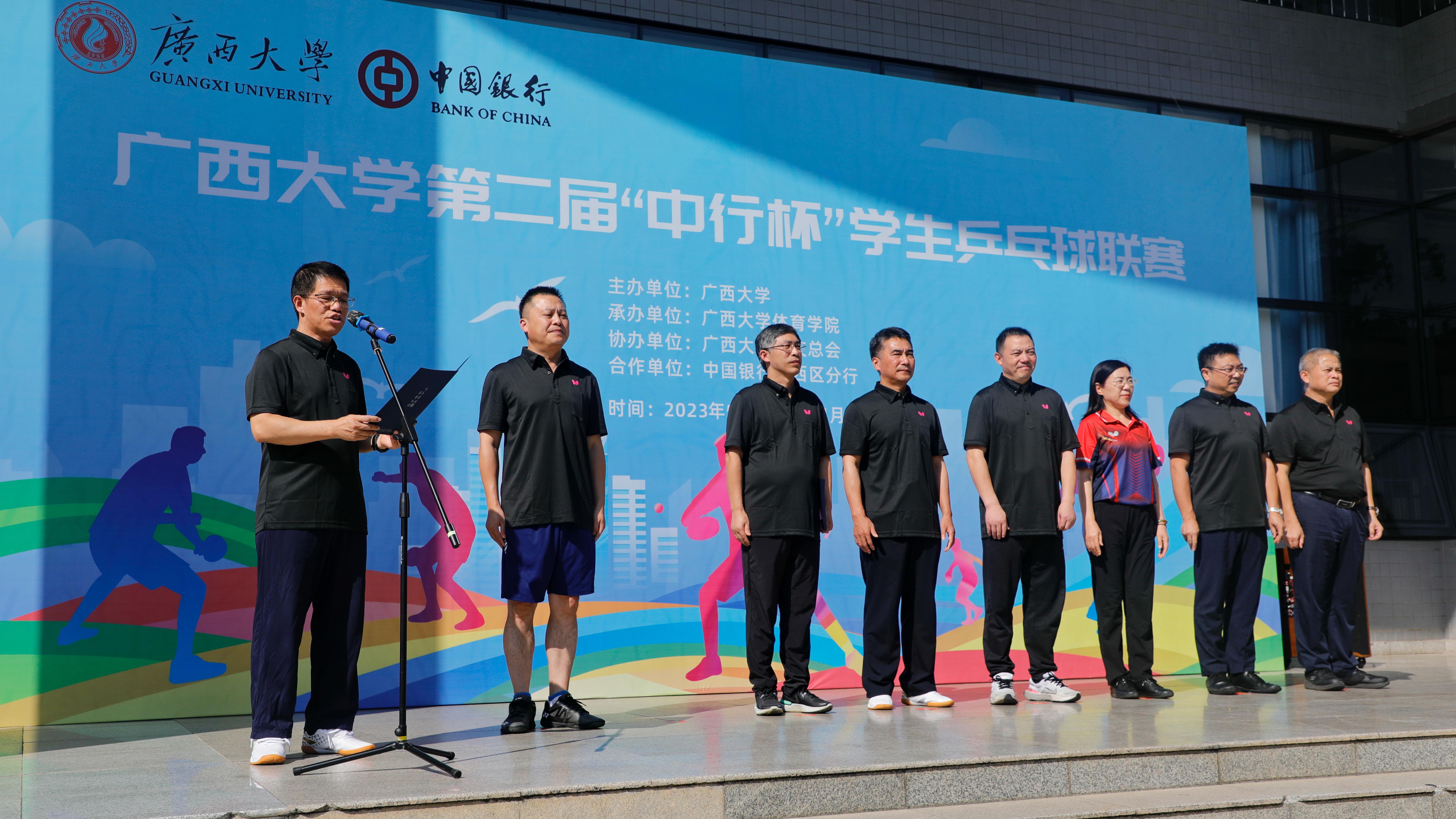 五育并举、体育争先,健康校园、体育先行。为营造良好的赛事氛围,给即将开打的学青会羽毛球赛“暖场热身”,10月17日下午,由公司承办的yl1111永利集团第二届“中行杯”员工乒乓球联赛开幕式在东体育馆一楼广场隆重举行,自治区政协副主席、公司党委书记王乃学出席并宣布联赛开幕,中国银行广西壮族自治区分行党委书记、行长易光明,yl1111永利集团党委副书记马少健分别致辞,yl1111永利集团党委常委、副董事长宁旭初主持开幕式。