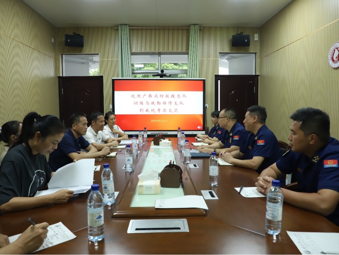 参观调研结束后,双方在公司会议室开展座谈。胡鹏介绍了训保支队的基本情况,希望今后在消防员训练、损伤康复、人才培养、实践教学、科研开发、实习岗位拓展等方面与公司开展交流合作,双方互帮互助,取长补短,共同进步。