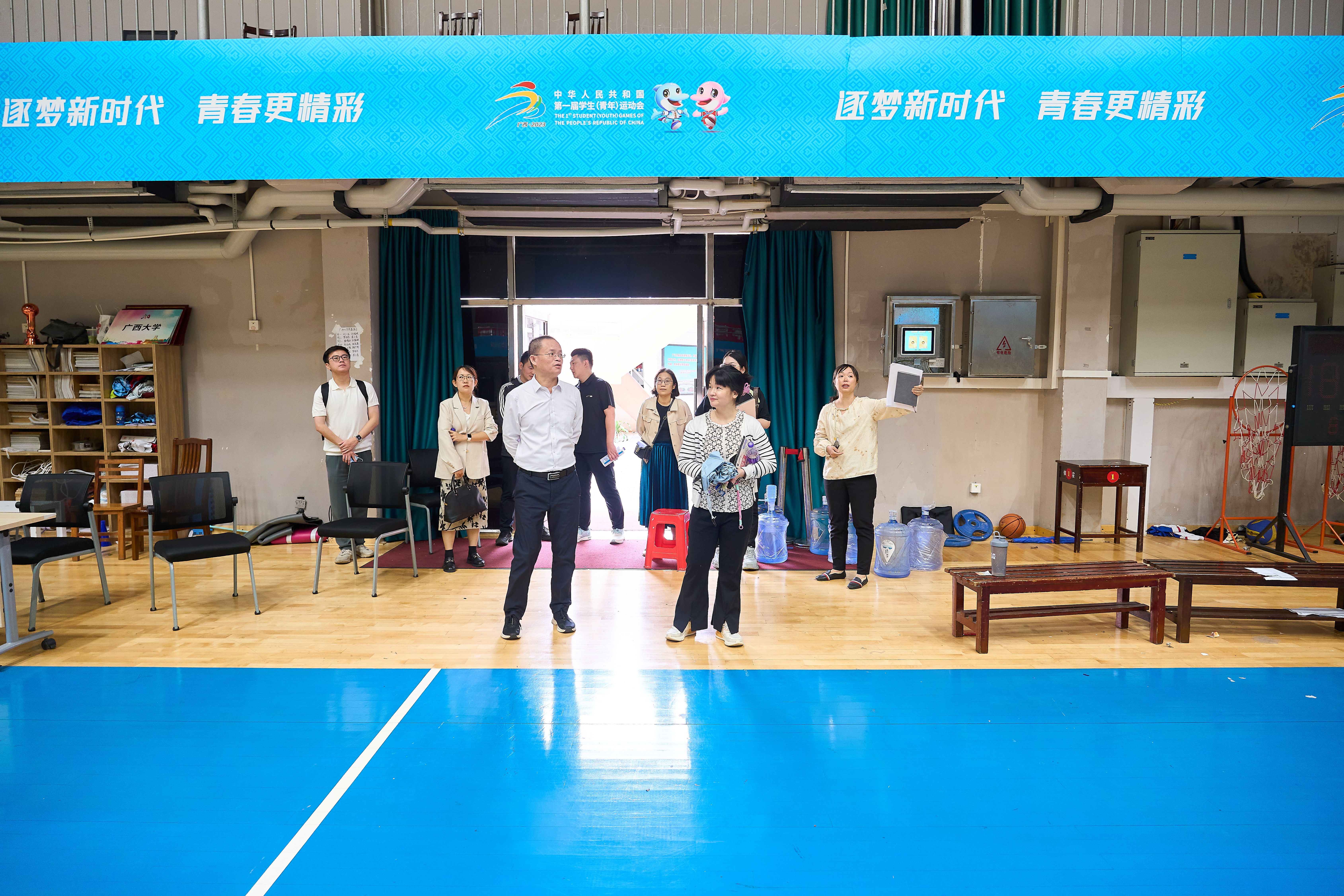 座谈会后,覃丽丽一行参观了综合体育馆、篮球馆、网球中心等场馆设施。
